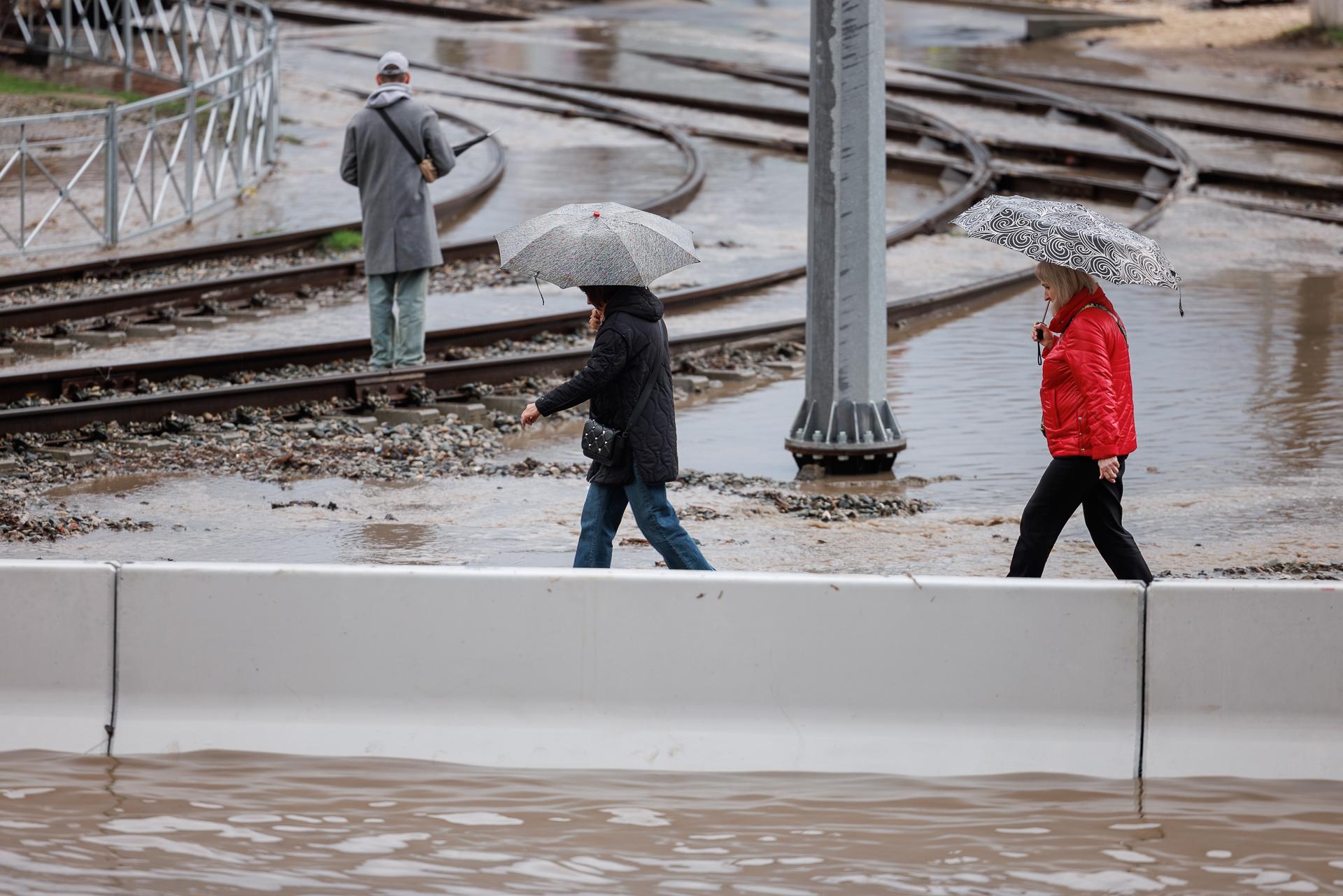 Улицы превратились в полноводные потоки, которые остановили движение автомобилей и общественного транспорта. Трамваи не могли двигаться, поскольку уровень воды превысил допустимый предел над головкой рельса.