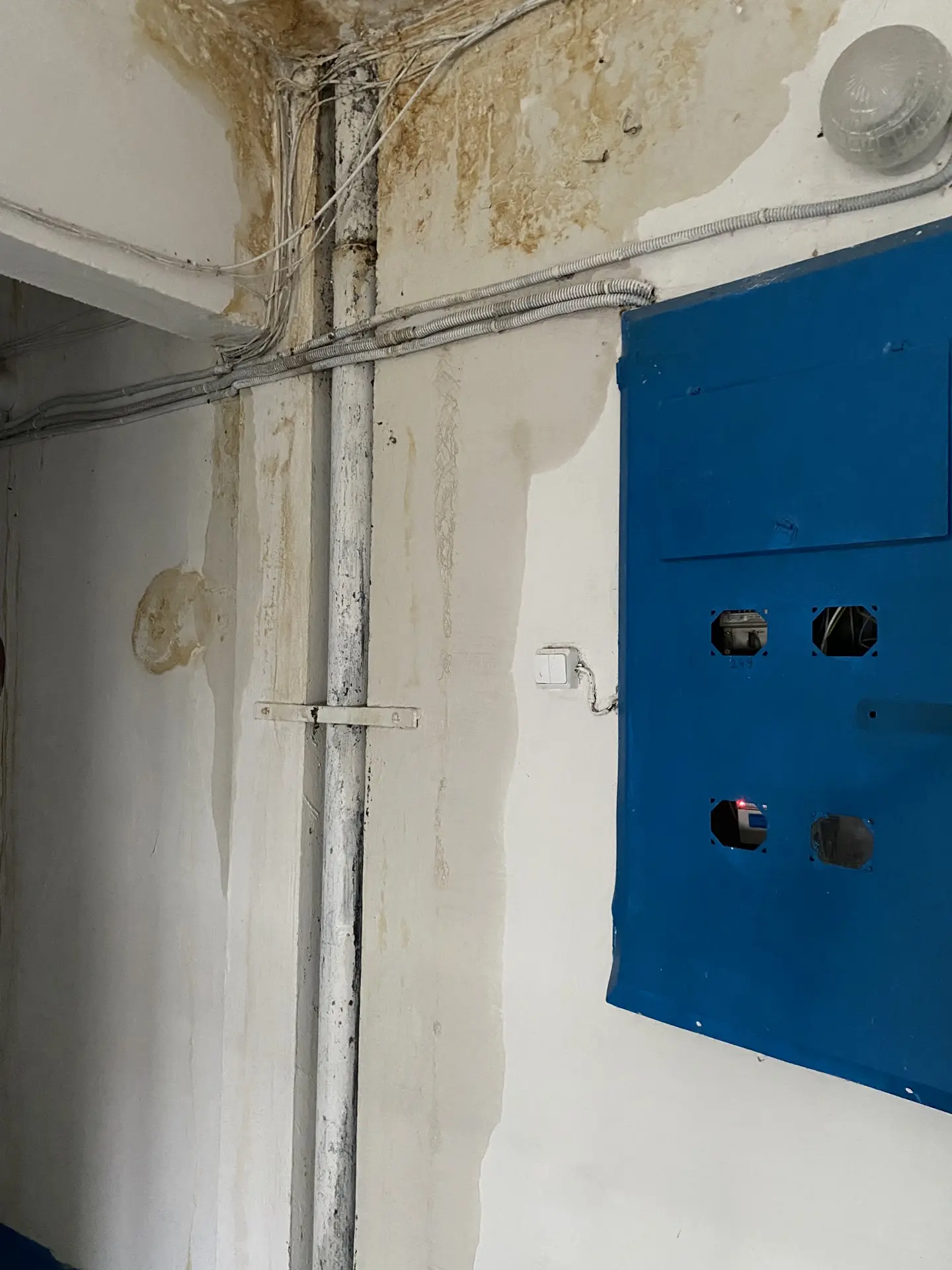 Вода скапливалась не только на проезжей части, но и внутри жилых зданий. Например, в многоэтажном доме по улице Кирова, 92, из-за протечки кровли на стене возле электрощитовой осталось большое мокрое пятно, свидетельствующее о повторяющихся проблемах.