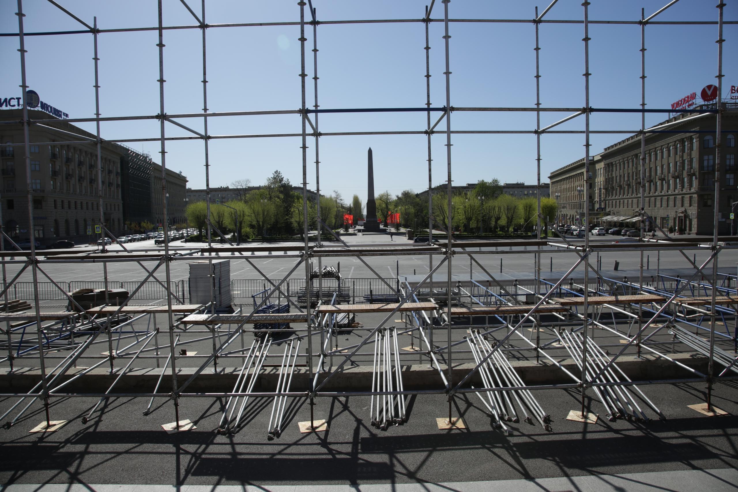 За десять дней до 9 мая на Площади Павших Борцов в Волгограде начался монтаж трибуны, которая внешне напоминает конструкции, используемые для парада Победы. При этом ни городские, ни областные власти не подтверждают место проведения торжества.