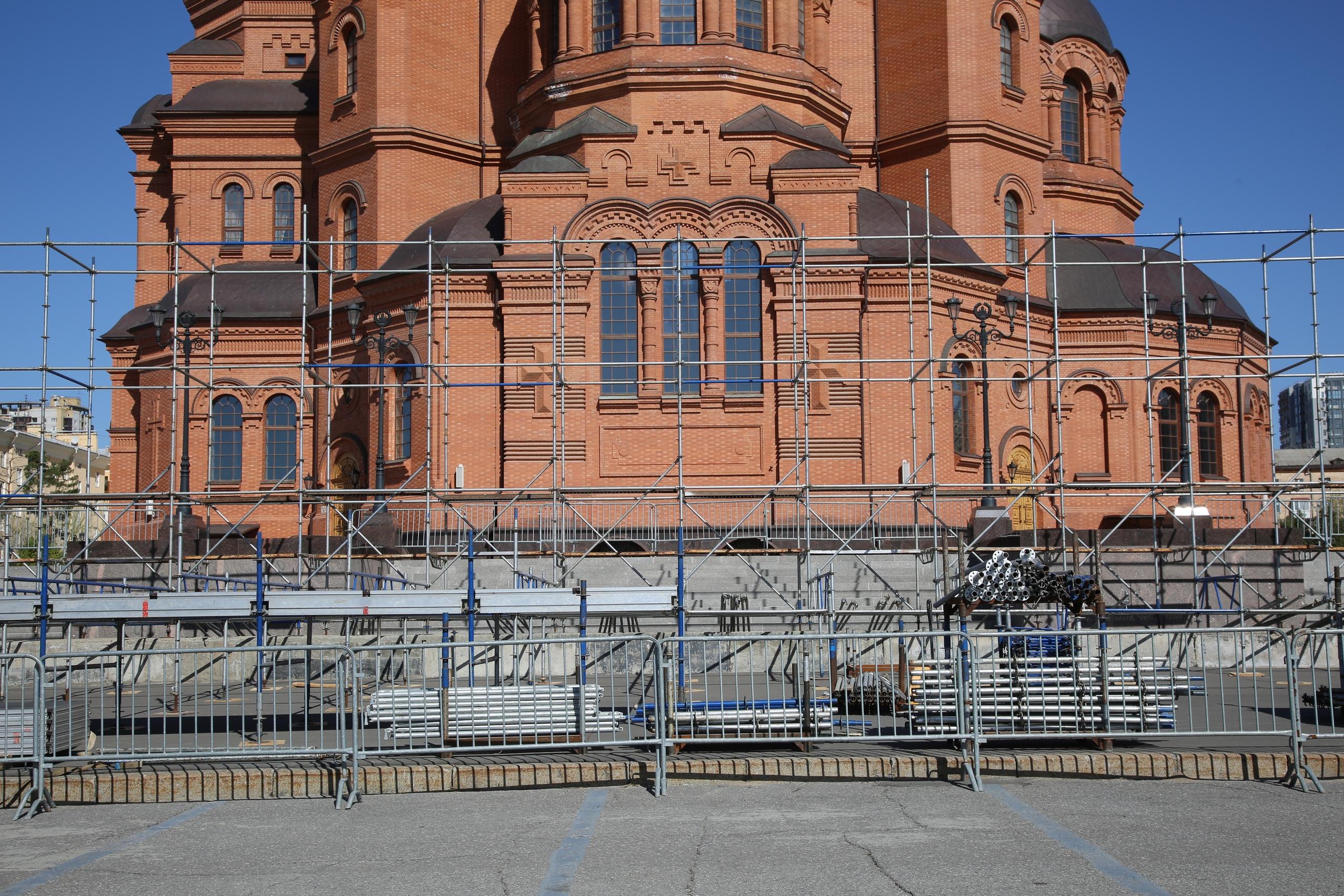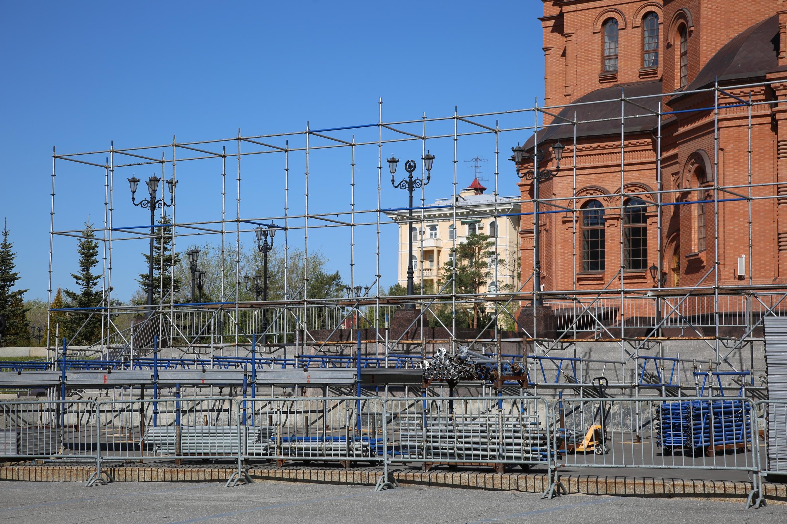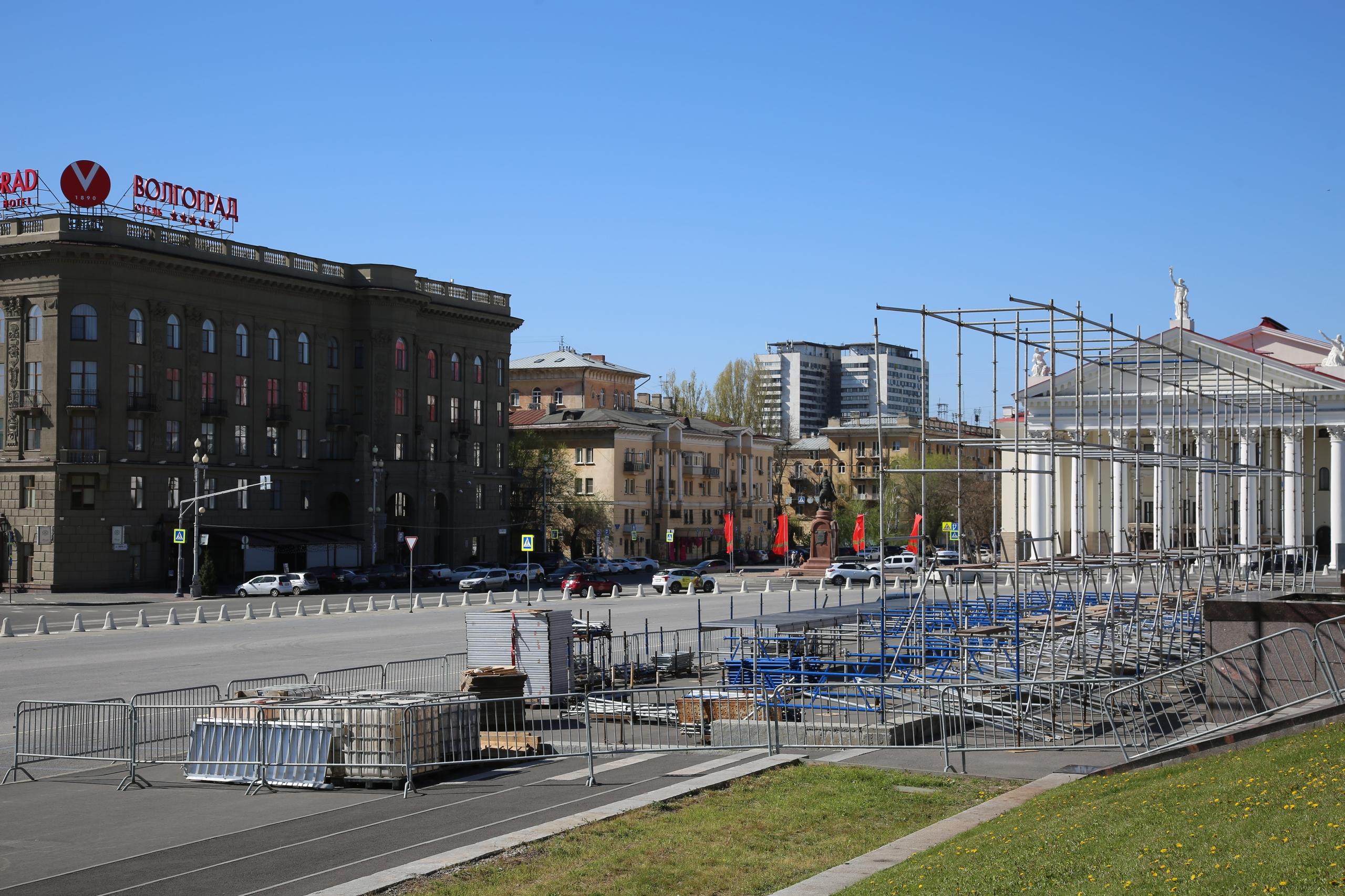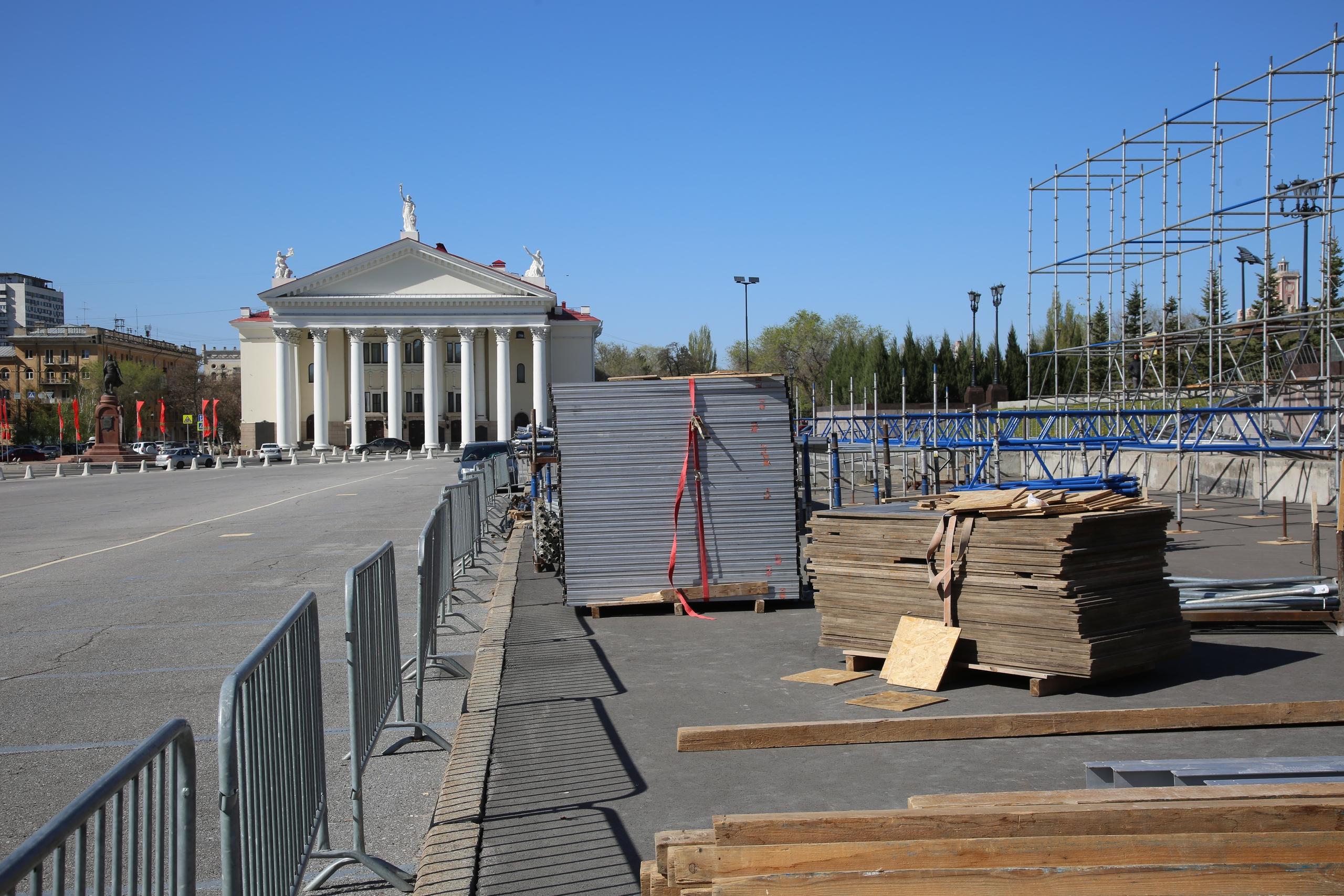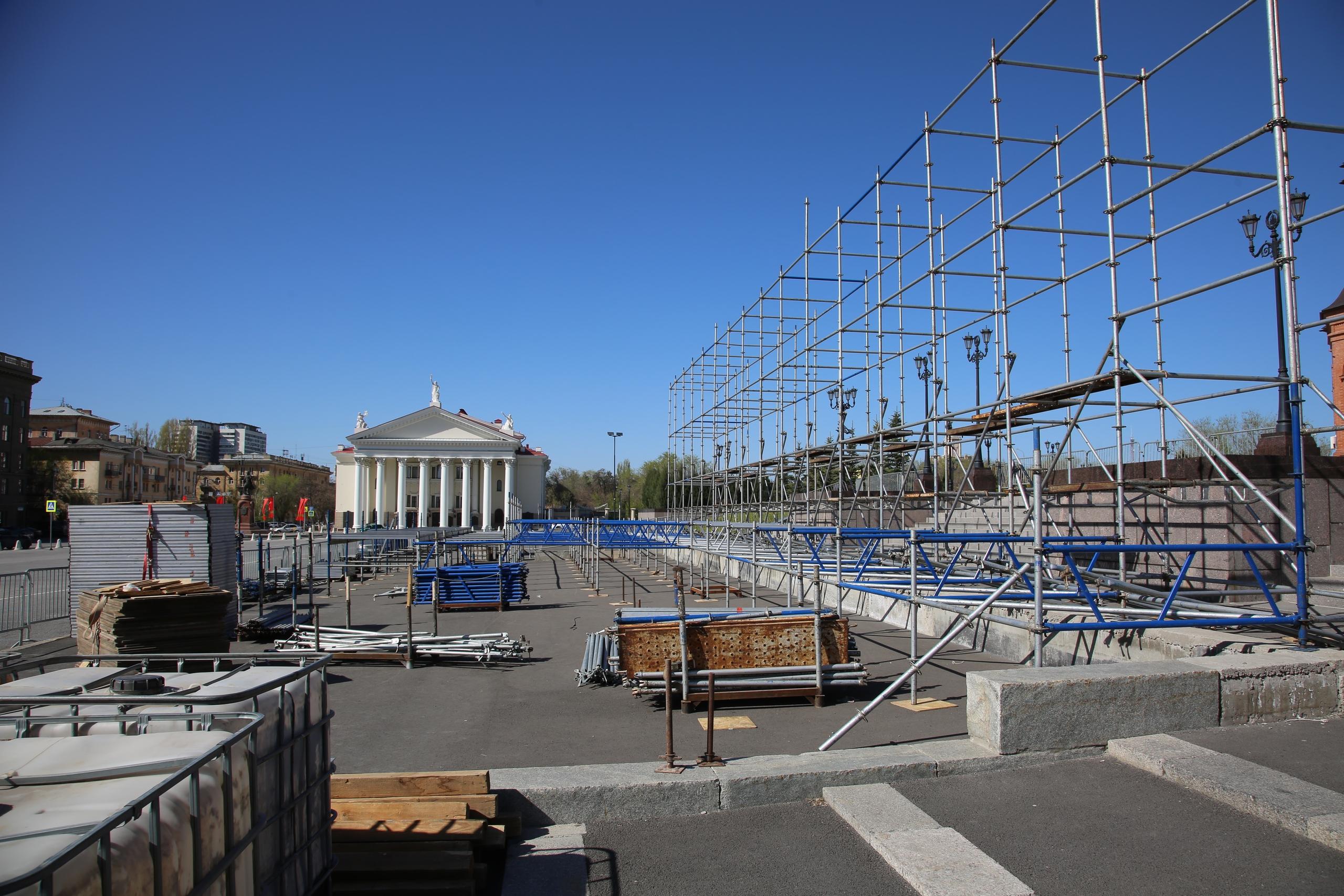 В центре Волгограда начали устанавливать трибуну, похожую на конструкцию для парада Победы. Официальные лица не раскрывают, где пройдет мероприятие 9 мая.