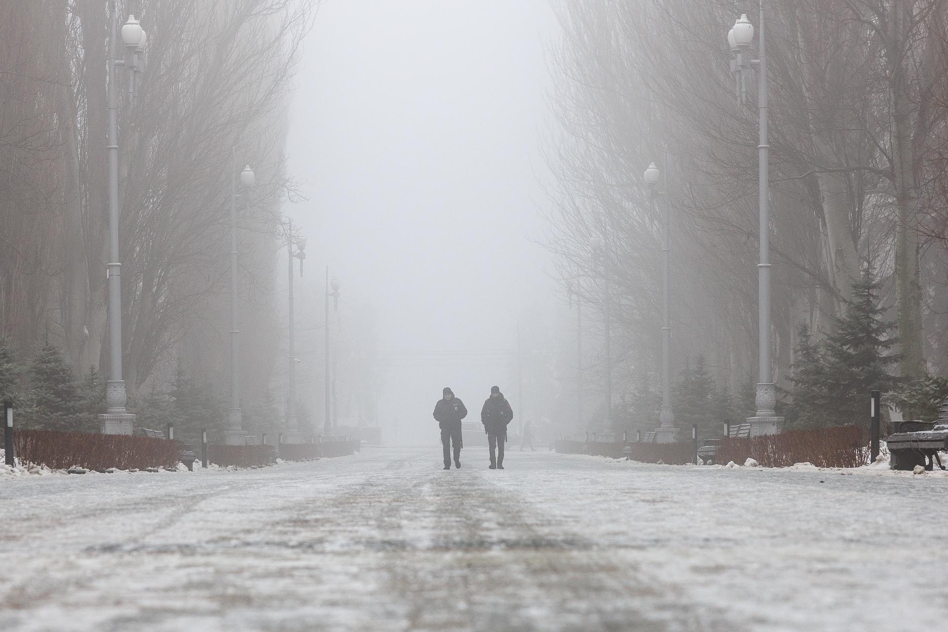 Сильный туман и гололед встретили жителей Волгограда в первый официальный рабочий день 2026 года. Из-за температуры около нуля градусов влага конденсировалась и замерзала на тротуарах, дорожках и ветках деревьев. Горожане, спешившие на службу до того, как дворники рассыпали песок, с трудом удерживали равновесие на скользких поверхностях и выражали недовольство медлительностью коммунальных служб. Предлагаем посмотреть, как прошло это утро в городе.