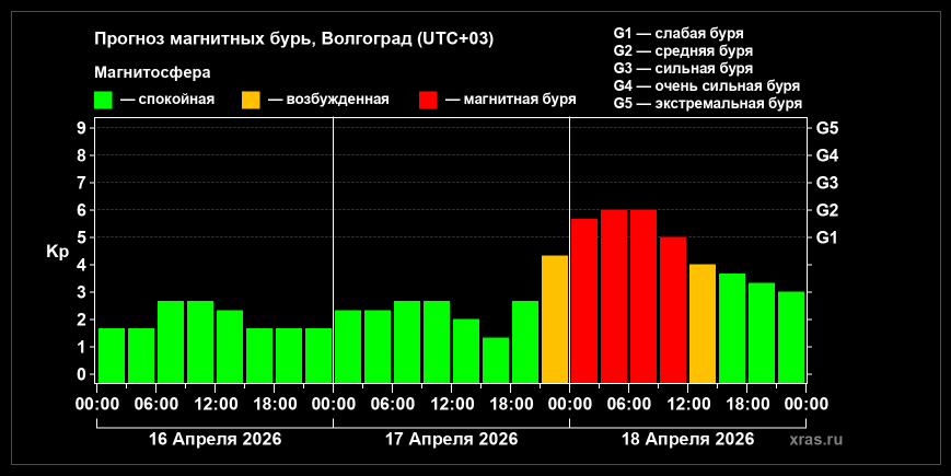 Однако в этот день ожидается магнитная буря, которая может отразиться на здоровье метеочувствительных людей. Наибольшая активность прогнозируется на утренние часы, к полудню геомагнитная обстановка стабилизируется.