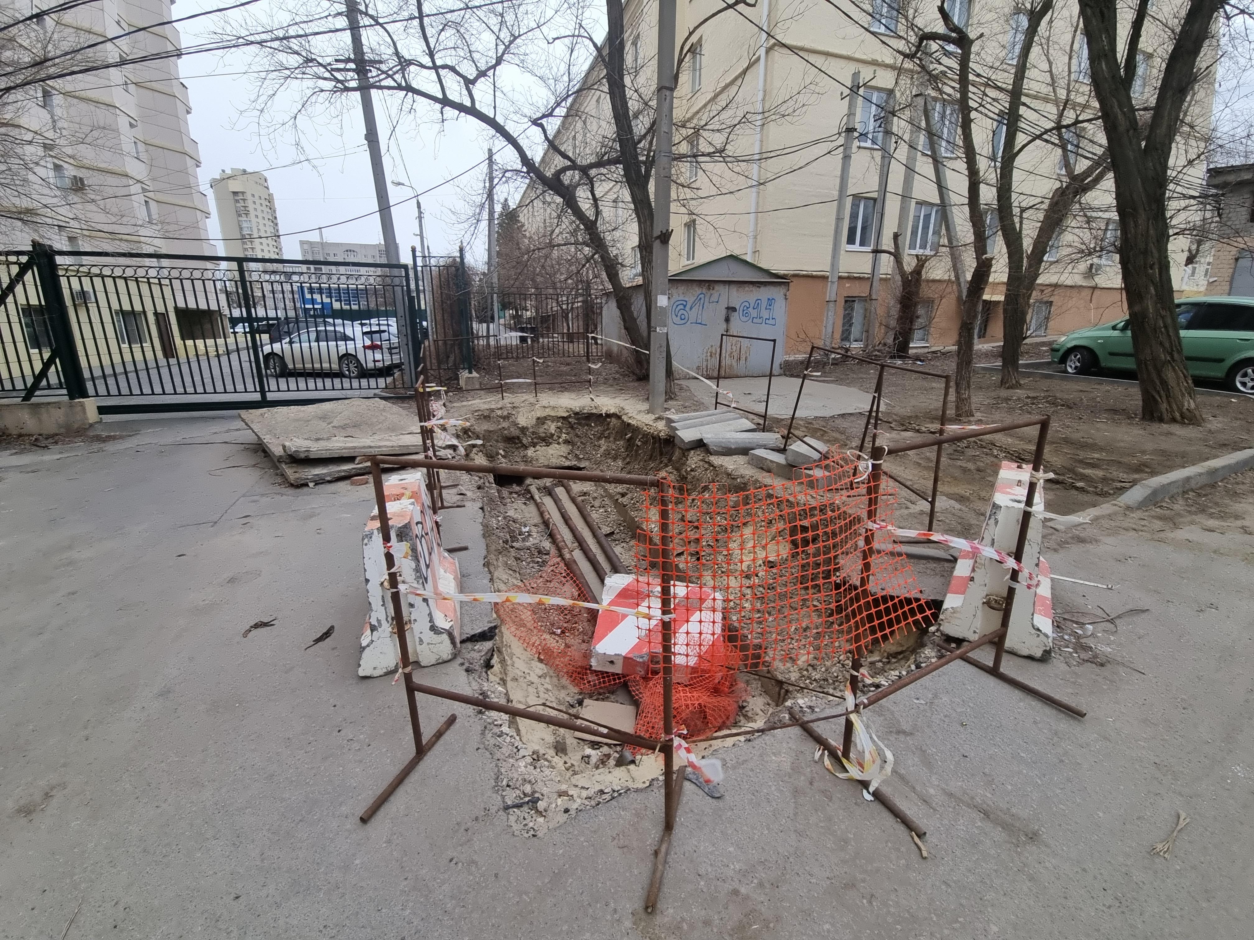 Яма появилась ещё в конце прошлой осени или начале зимы. «Помню, что создали этот канал быстро и стремительно: ворвались коммунальной техникой к нам во двор, отогнали любящих парковаться там чиновников «Волгоградметроэлектротранса», взломали асфальт с бордюрами, что-то там заварили и скрылись, обещая скоро вернуться. С тех пор уже несколько месяцев ждём, а они всё не возвращаются», — рассказывает один из местных жителей.