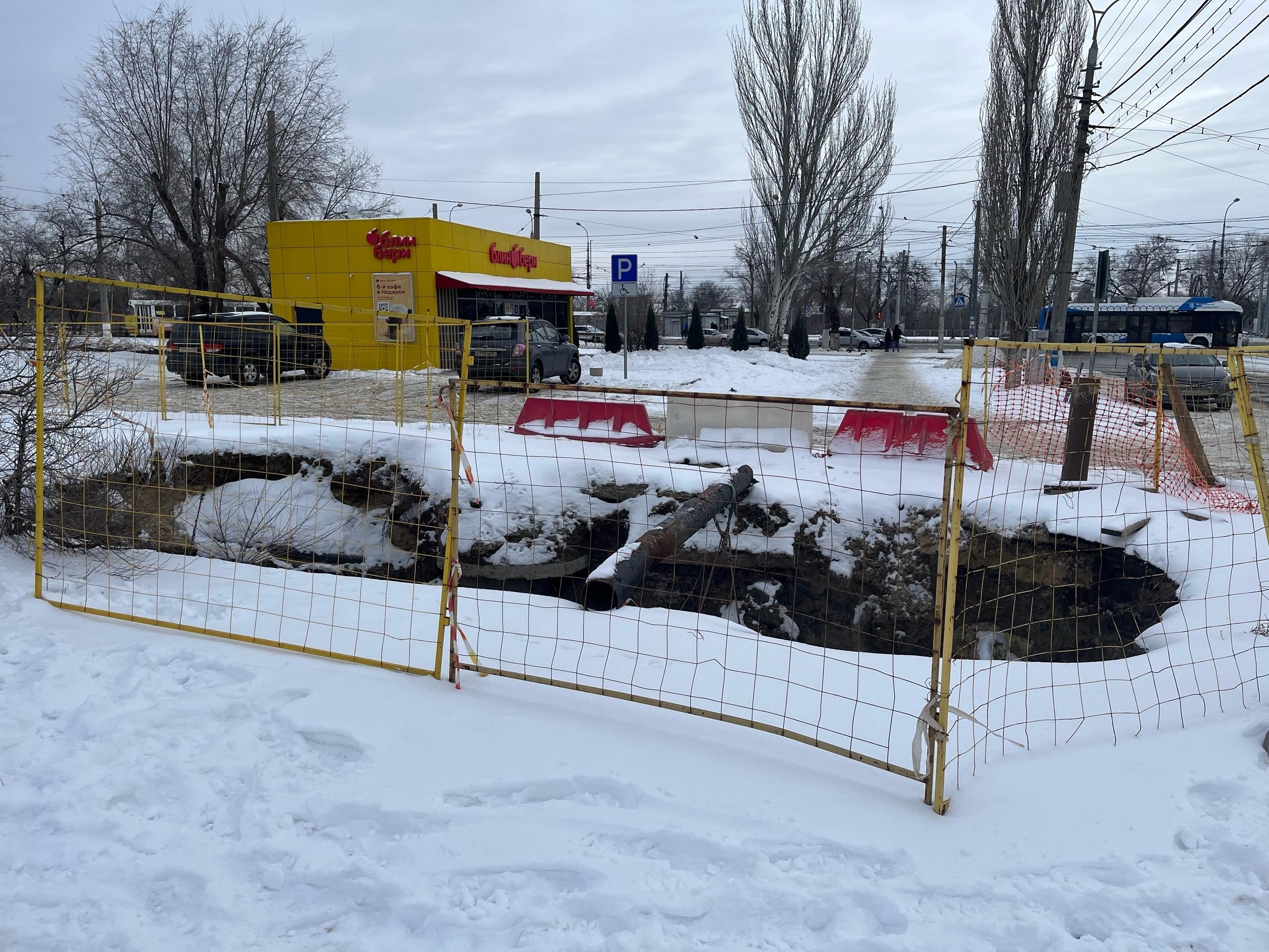 Котлован на пересечении улицы Штеменко и проспекта Ленина в Краснооктябрьском районе Волгограда продолжает существовать уже второй год. Его вырыли в 2024 году в рамках ремонтных работ, но с тех пор так и не засыпали.