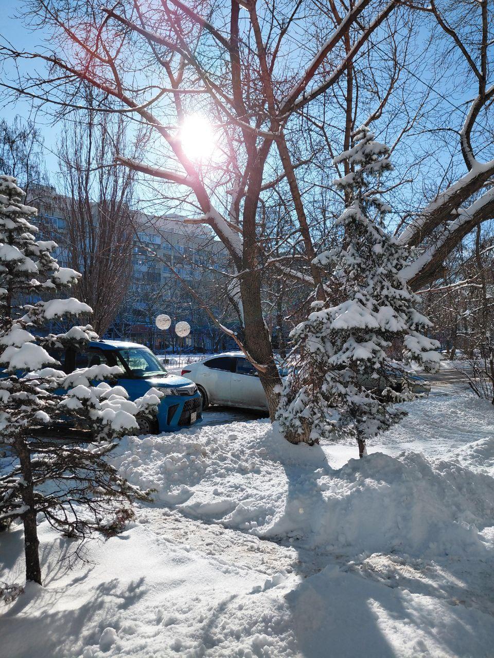 На фотографиях, сделанных горожанами, видны заснеженные улицы, парки и даже снеговик, которого кто-то успел слепить. Эти снимки поднимают настроение и напоминают, что до календарной весны остаётся всего неделя.