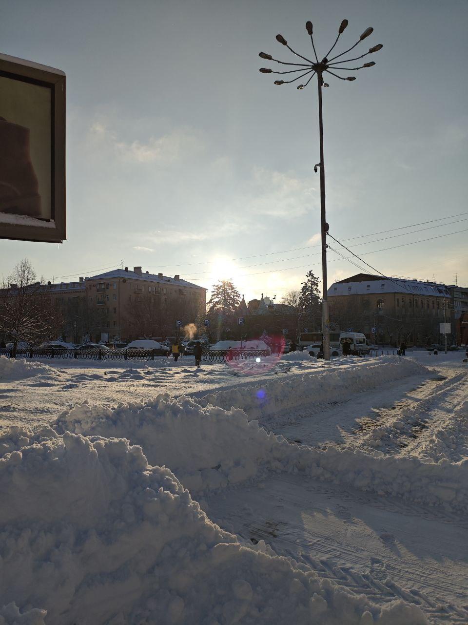 Пейзаж больше напоминает город за Уралом, где снег — обычное дело.