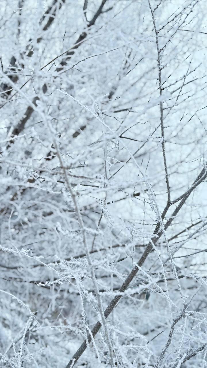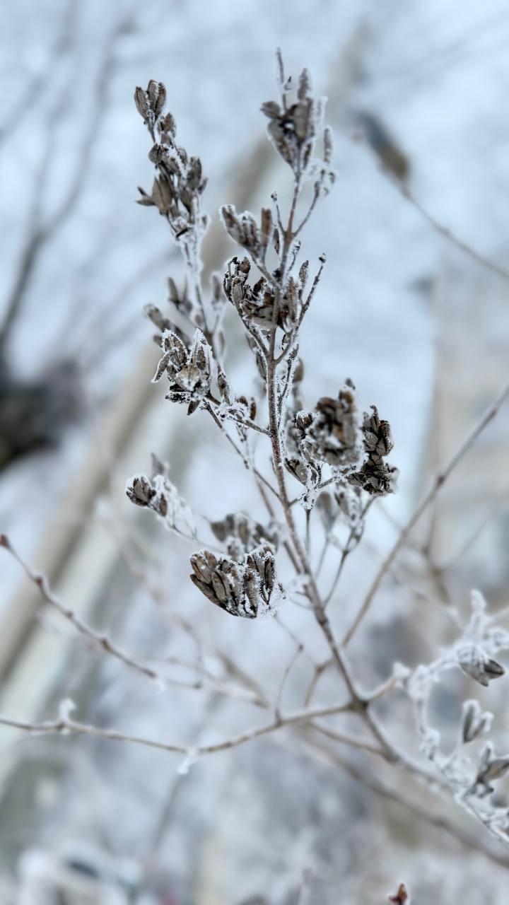 Иней украсил даже засохшие ветки.