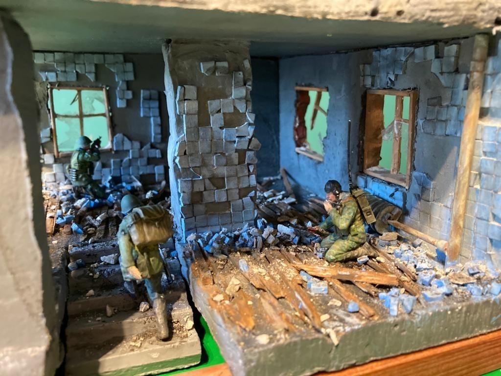 Свою диораму, посвященную подвигу восьмого мотострелкового корпуса из Волгограда во время штурма Грозного, Жуков создавал из зарубежных фигурок и с использованием зарубежных красок. «Вот так мы помним историю родной страны», — заключает он.