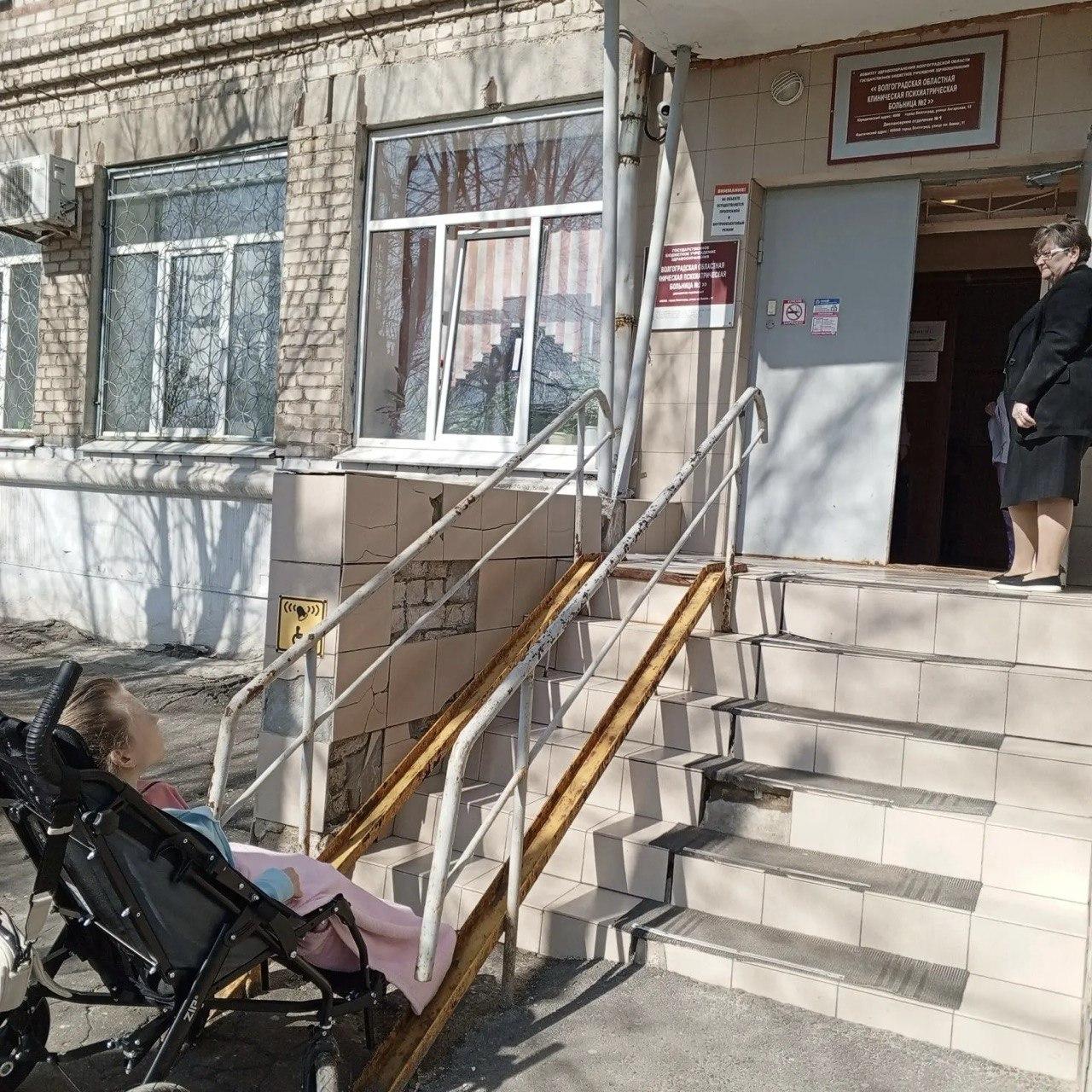 Мать ребенка с инвалидностью потребовала от властей Волгограда ремонта пандуса у входа в психиатрическую больницу №2 в Краснооктябрьском районе. По ее словам, состояние конструкции не позволяет маломобильным людям самостоятельно попасть в здание.