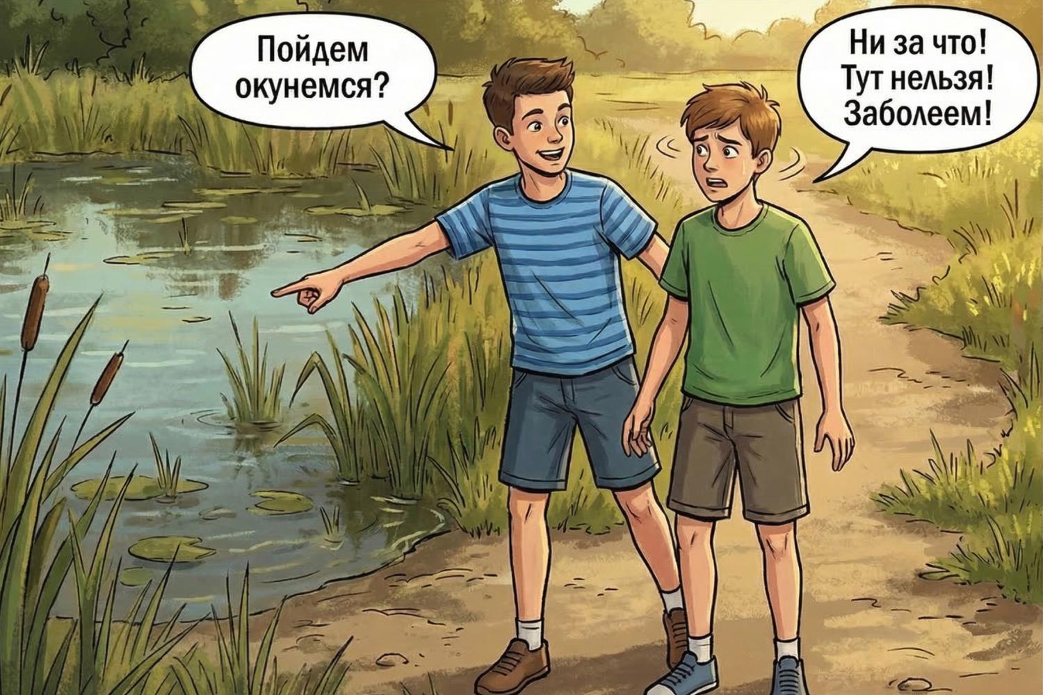 Купание в непроверенных водоёмах летом связано с высоким риском заражения.