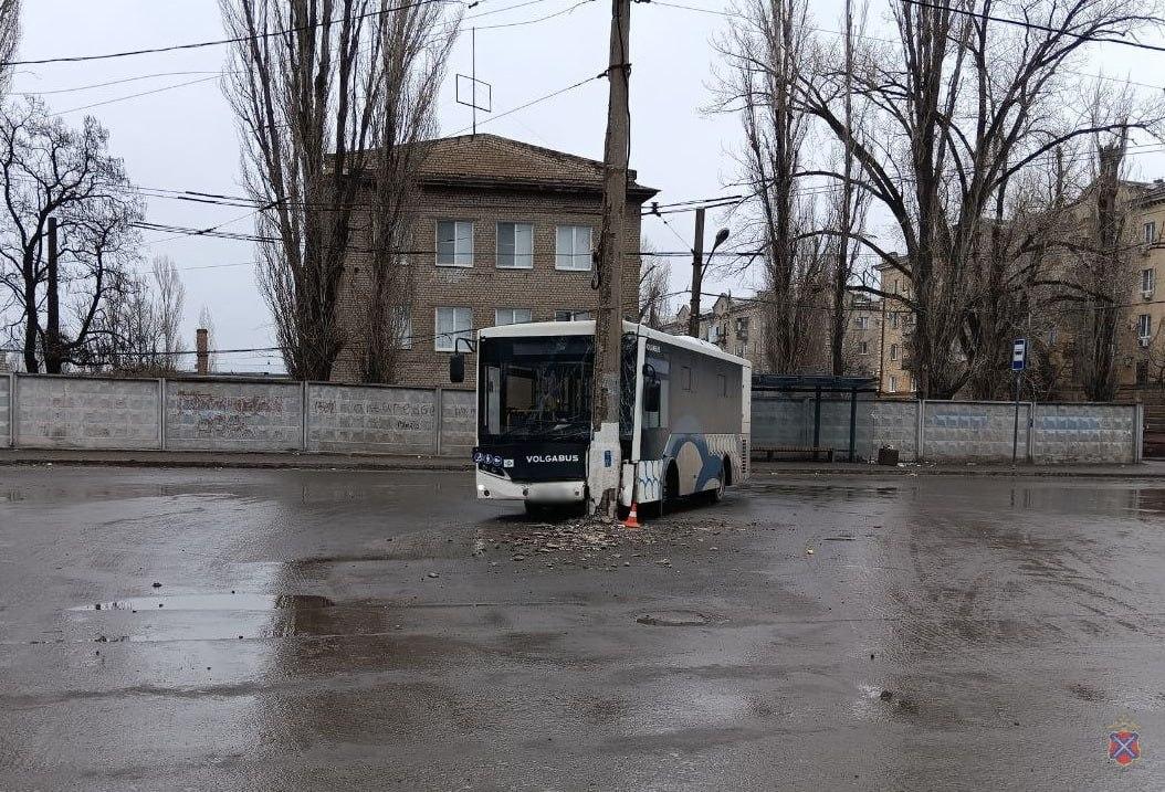 В Волгограде два пассажира автобуса были госпитализированы после аварии, в которой транспортное средство столкнулось с опорой ЛЭП.