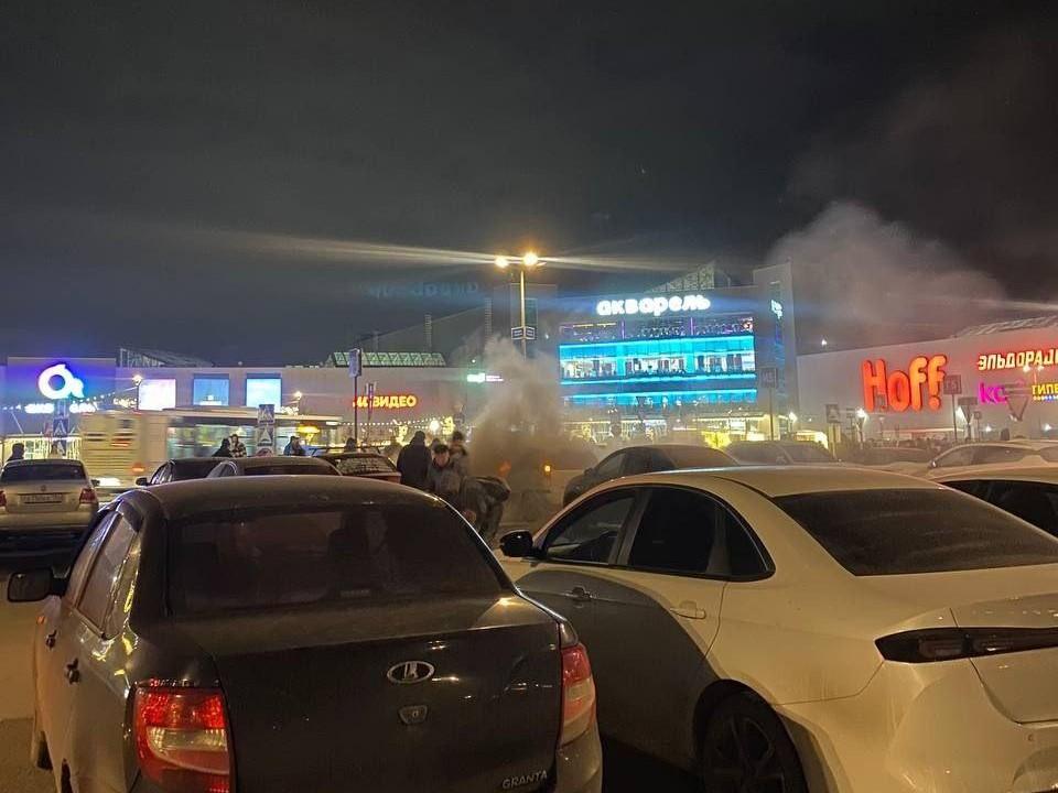 Автомобиль сгорел на парковке волгоградского ТЦ «Акварель»