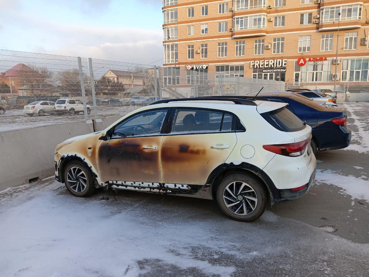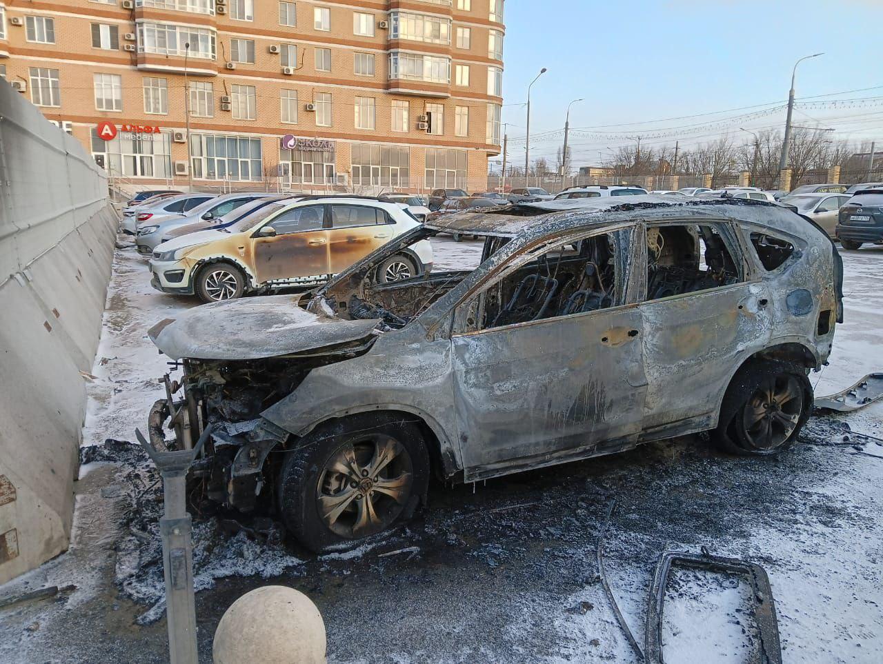 На парковке ЖК в Волгограде сгорел автомобиль после хлопков