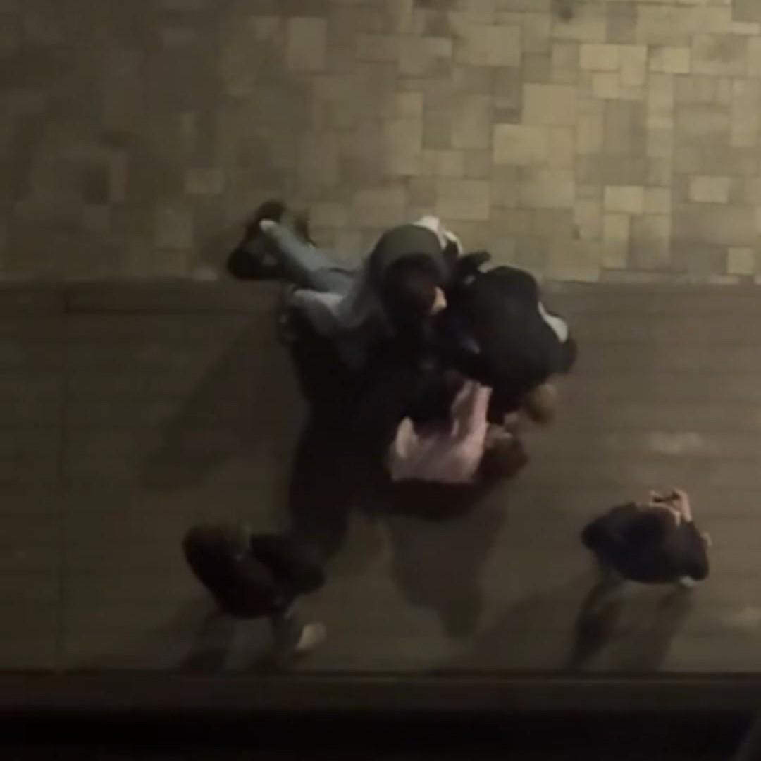 Происшествие было зафиксировано на видео. На кадрах видны два парня и девушка, находящиеся на земле. Девушка пытается оттянуть агрессора от пострадавшего. Вокруг этой группы стоят трое короткостриженных мужчин, которые лишь наблюдают за ситуацией.