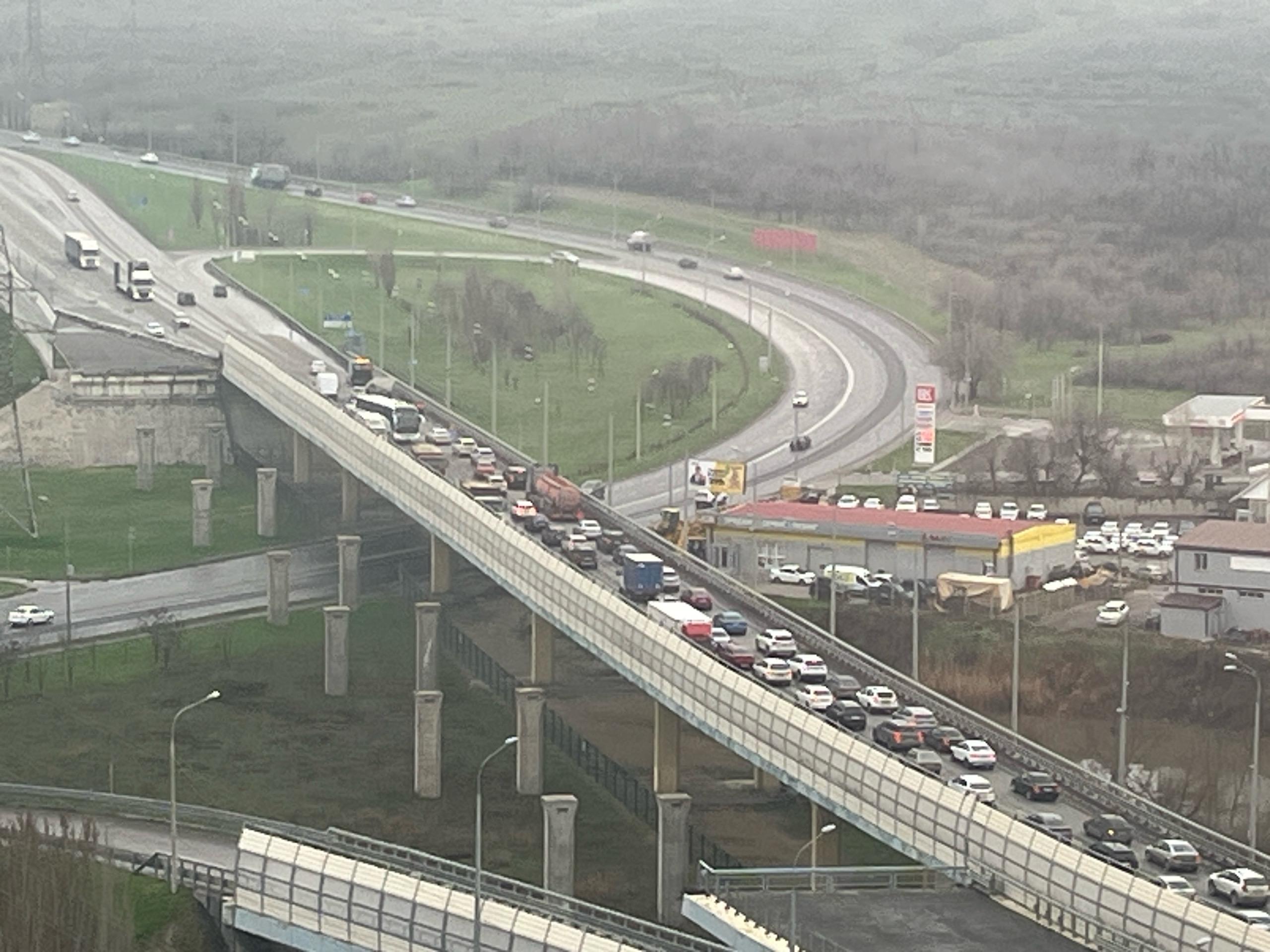 Сервис «Яндекс. Карты» показывает, что образовавшаяся пробка в направлении Волгограда достигла длины в 500 метров.