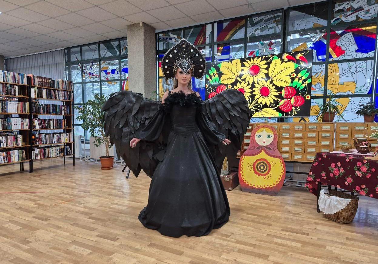 В областной библиотеке для молодёжи модельер Алёна Сказка представила коллекцию нарядов, созданных по мотивам русского фольклора.
