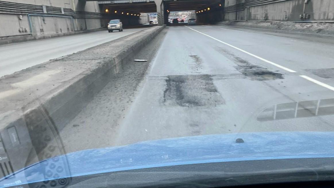 Автомобилисты сообщают о ямах различных размеров по всей длине тоннеля.