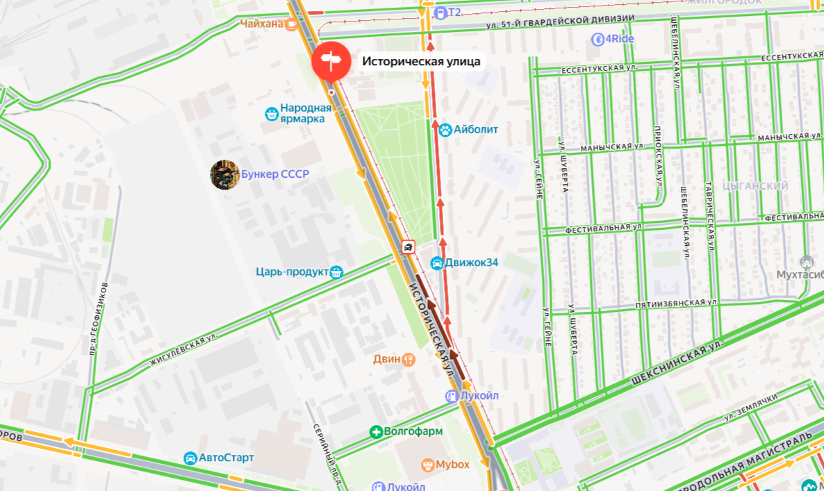 Согласно информации с сервиса «Яндекс.Карты», движение перекрыто в обоих направлениях по улице Исторической. Затор также образовался на повороте с Исторической на Краснополянскую улицу.