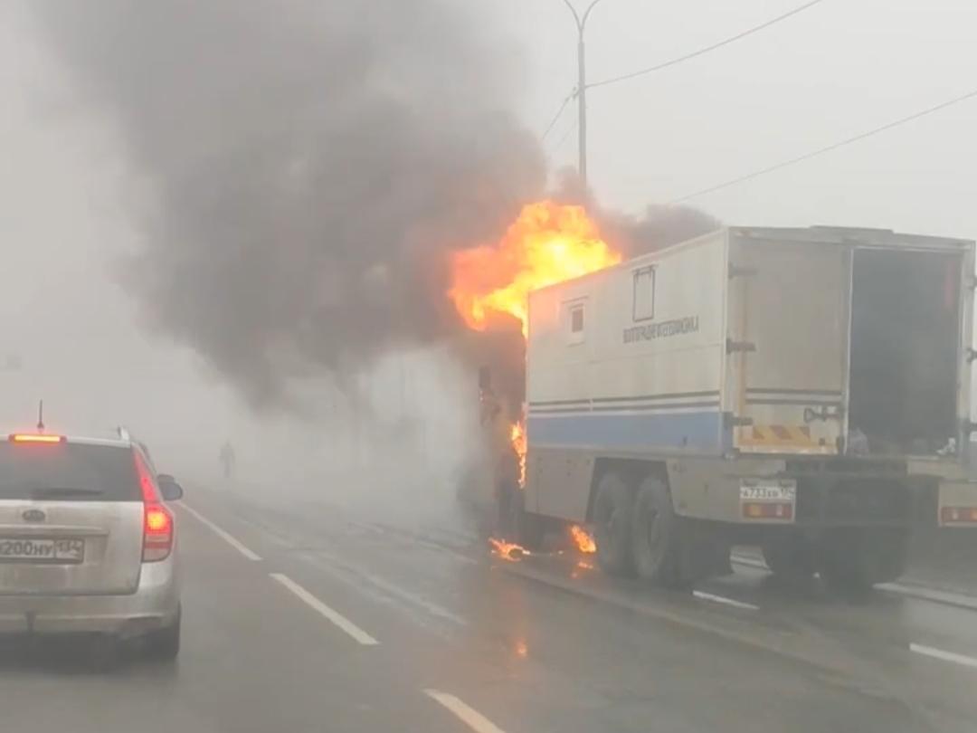 Горящий грузовик парализовал движение в Волгограде