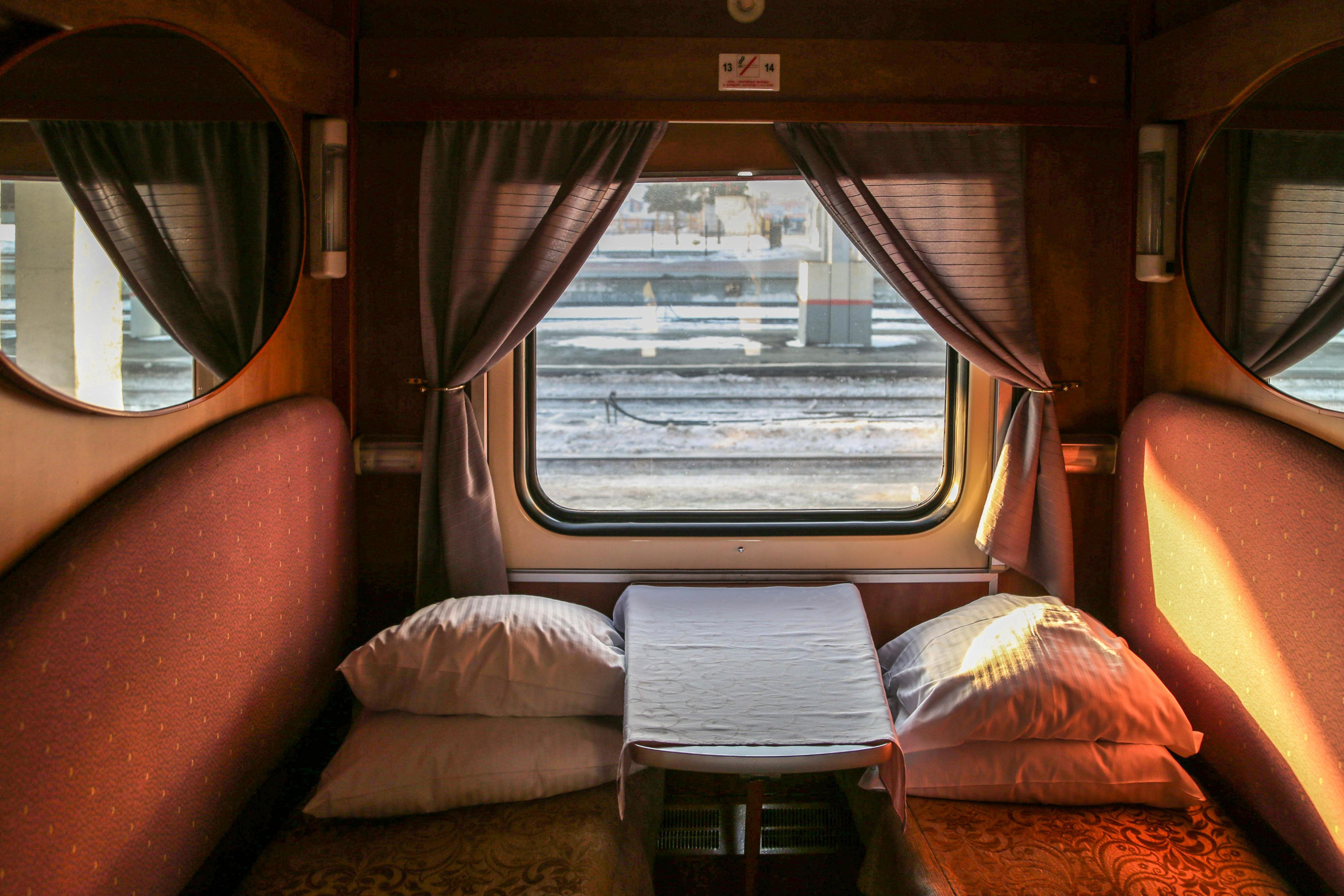 Пассажиры поезда ожидают возобновления движения в комфортных условиях.