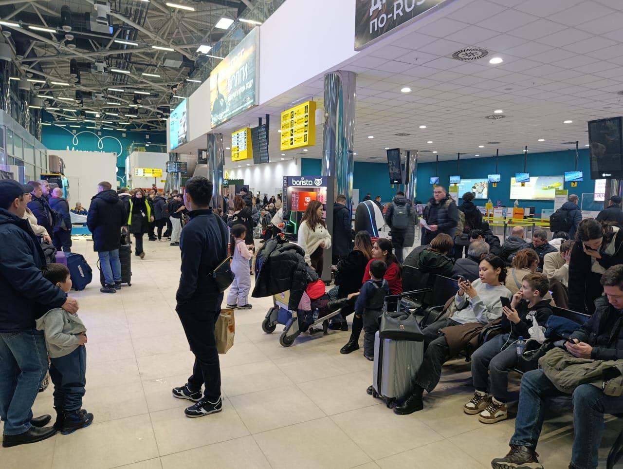 Пассажиры вынуждены ожидать вылета в зале аэровокзала.