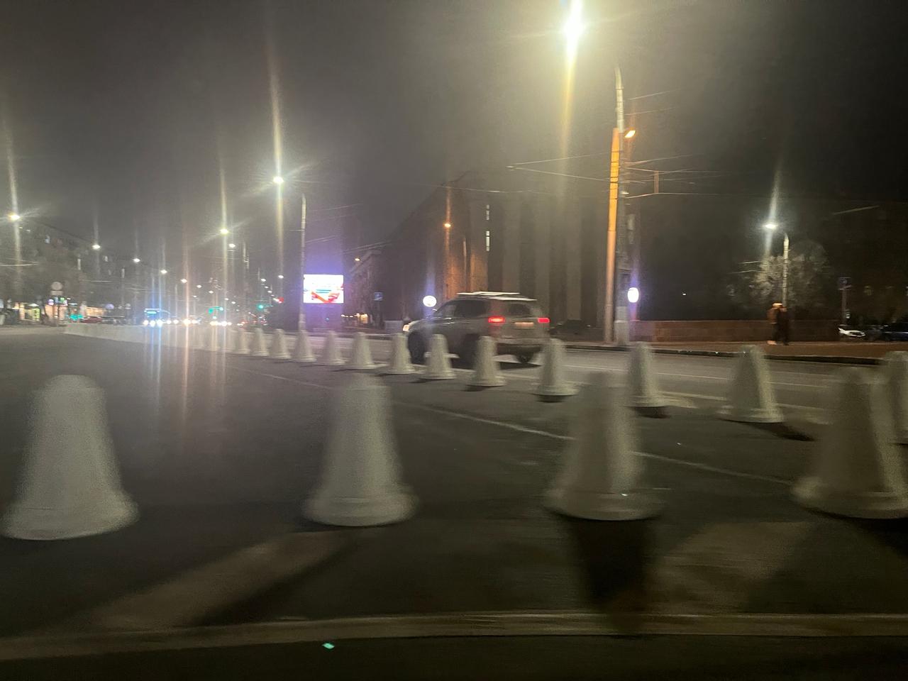 Бетонные ограждения «зубы дракона» были смонтированы на площади Ленина в течение выходных дней.