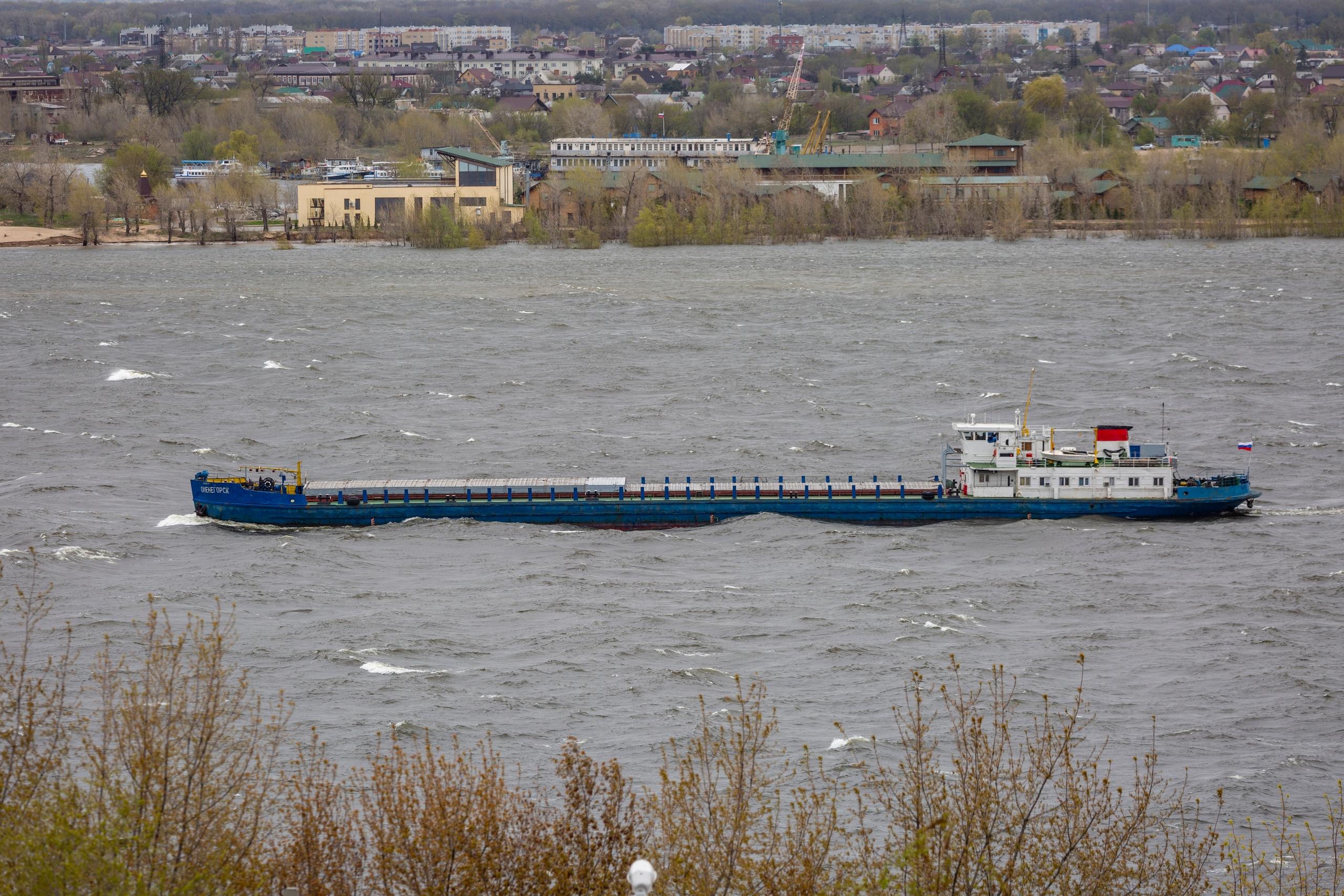Суда, идущие вверх по Волге, вынуждены противостоять не только течению, но и ветру.