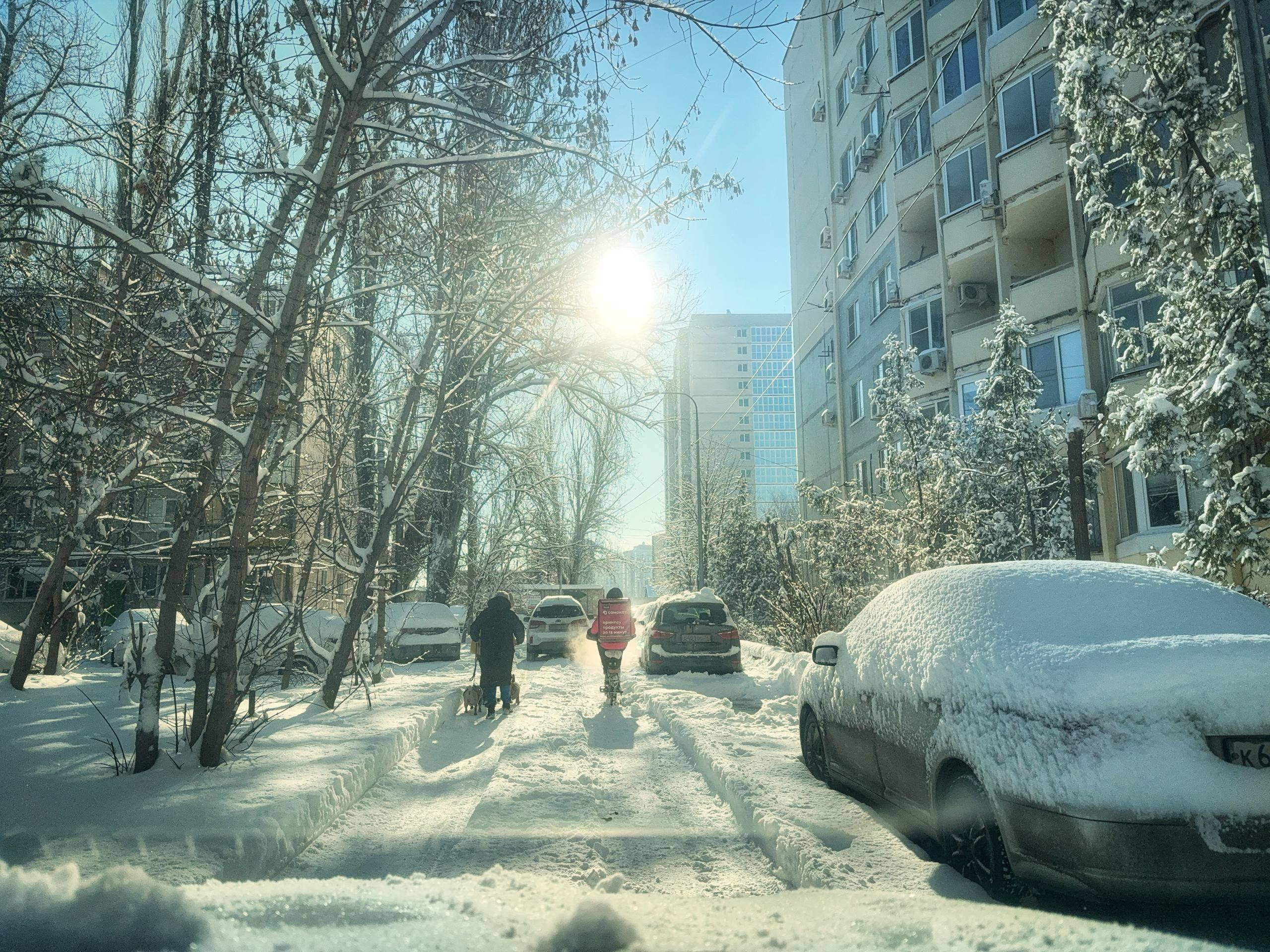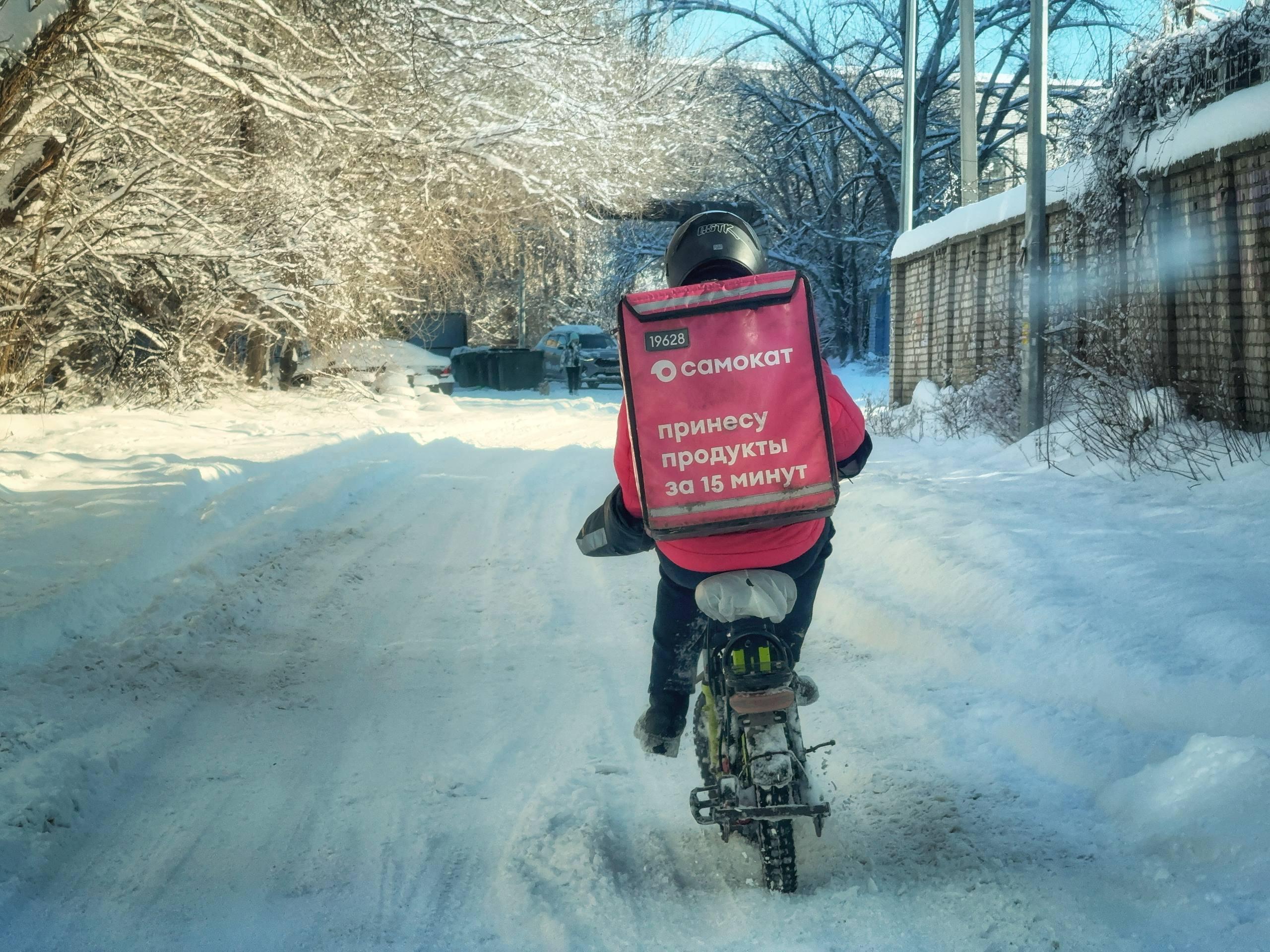 Курьеры работают, несмотря на снег и холод.