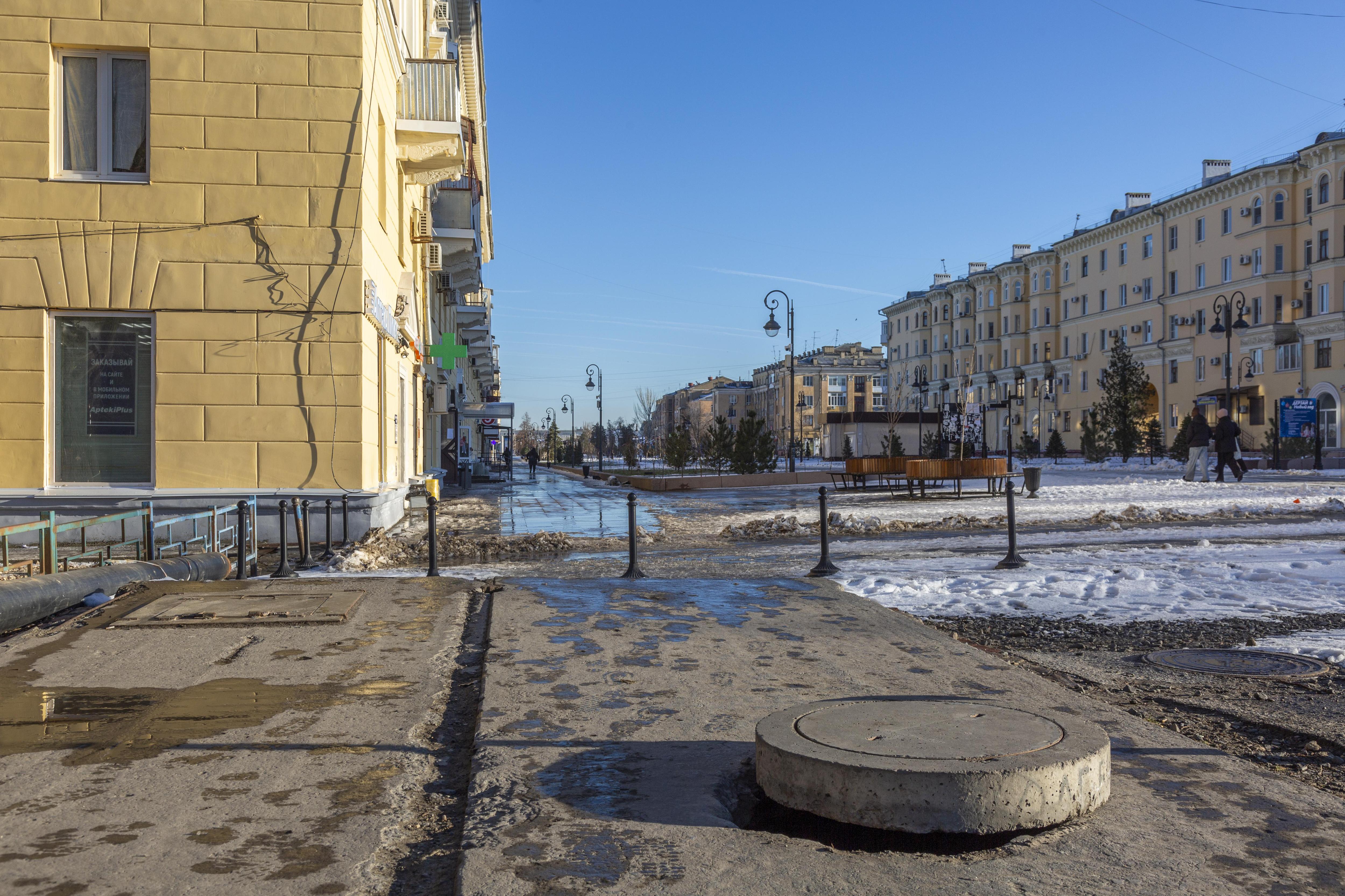 Власти обещают, что летом здесь появится озеленение, а сейчас можно наблюдать зимний вид.