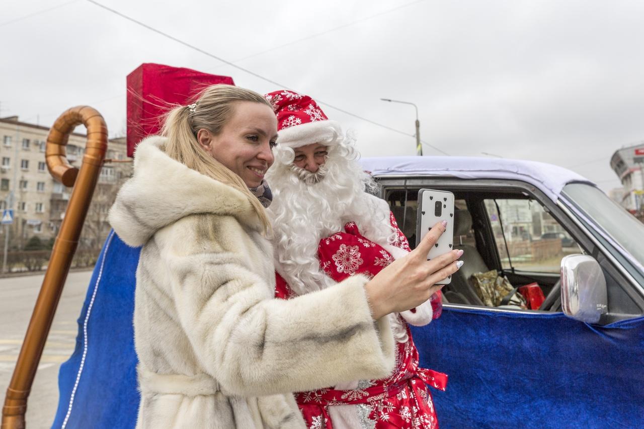 Перед Новым 2020 годом он также посещал редакцию одного из местных СМИ, где рассказывал о возникновении идеи дарить людям праздник и о том, как сотрудники ГИБДД реагируют на нестандартный внешний вид его машины.