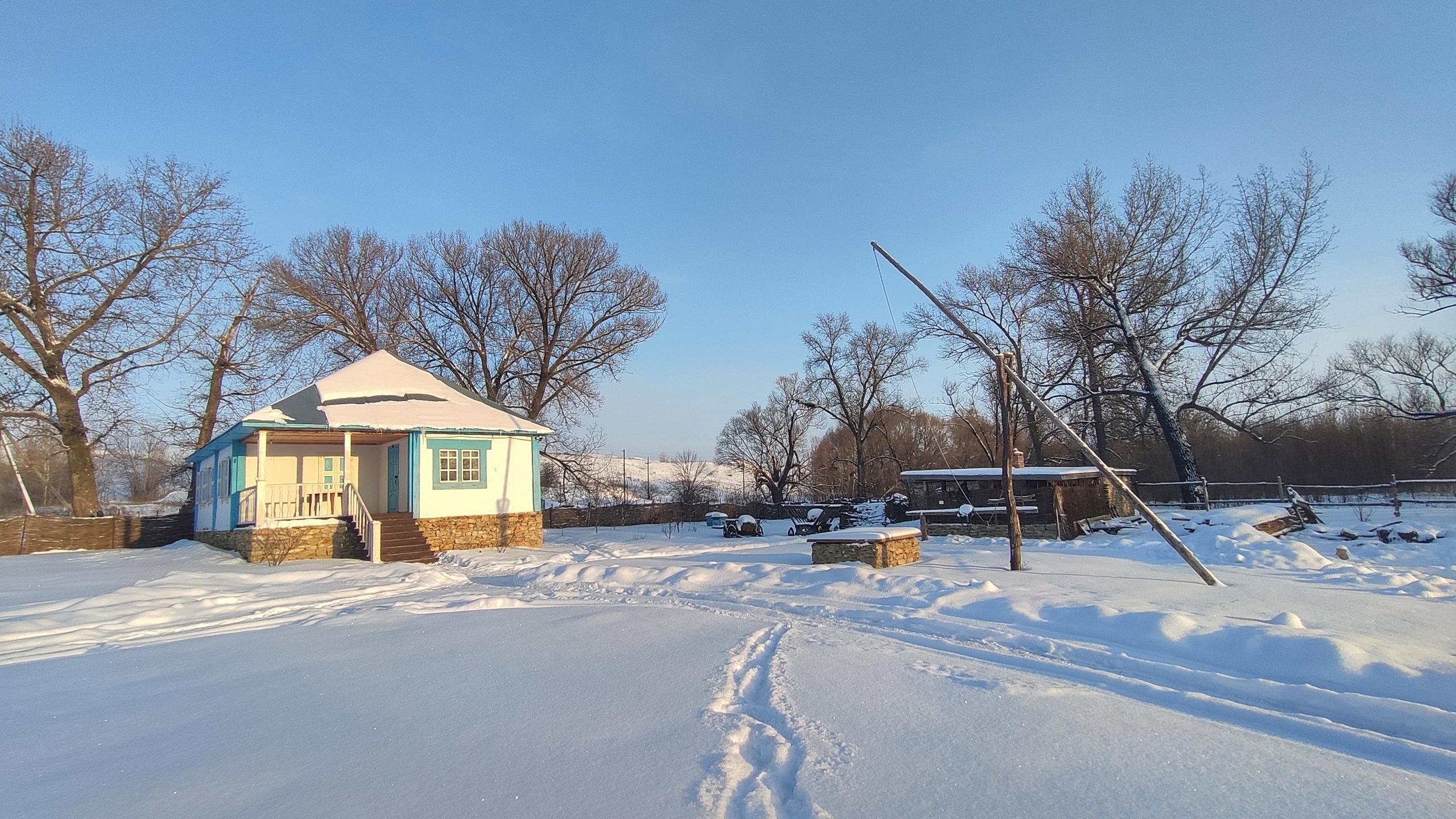 Автор фотографий отмечает: «Левыкинский городок называют музеем под открытым небом. Он включает в себя комплекс выставочных экспонатов. Например, круглый казачий дом с подворьем, комплекс с частоколом, землянками, избой и часовней на берегу реки Каменки, отражающей быт Хопёрского казачества. Вышла на прогулку, когда мороз и солнце были действительно как из стихотворения Пушкина».